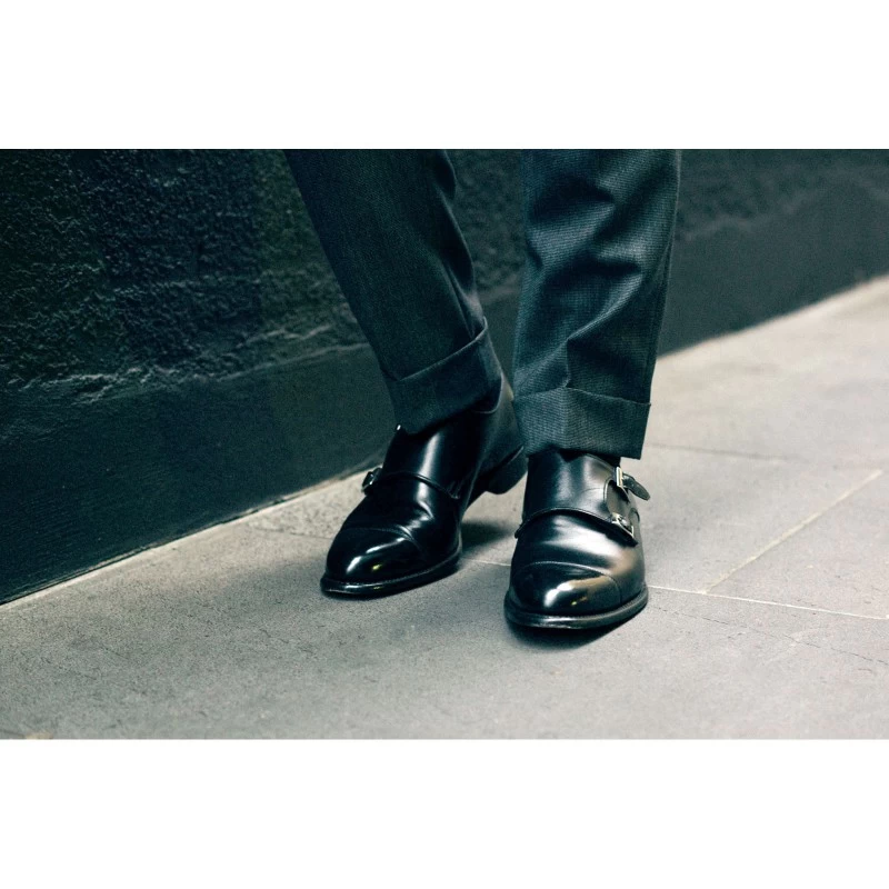 The Herring Attlee is a stylish double monk-strap shoe on the elongated 11028 last for a bespoke feel. Handmade in Northampton, England, they embody all the artistry of English shoemaking. Few shoes are as on trend at the moment as double buckle monks. Versatile enough to be worn with both suits and jeans few shoes have quite the same sense of presence and playfulness as double monks. Consider black double monks with less formal fabrics like Flannel and Prince of Wales check. This sleek shape is one of our most popular lasts giving a very elegant and bespoke appearance without compromising the fit. Due to the longer last shape there will be slightly more room in front of your toes.This is a standard fitting shoe so you can confidently order your normal UK size. |