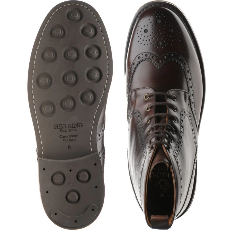 Herring Buxton is a classic brogue boot on a sturdy Goodyear-welted rubber sole. Using fine calf leathers we have created a good fitting, comfortable boot that looks great from every angle. One of the wardrobe classic styles you cannot do without. This is a generally well fitting shoe but the country last does give you more room in the toe so if you like a close fitting last you might want to choose a half size down. |
