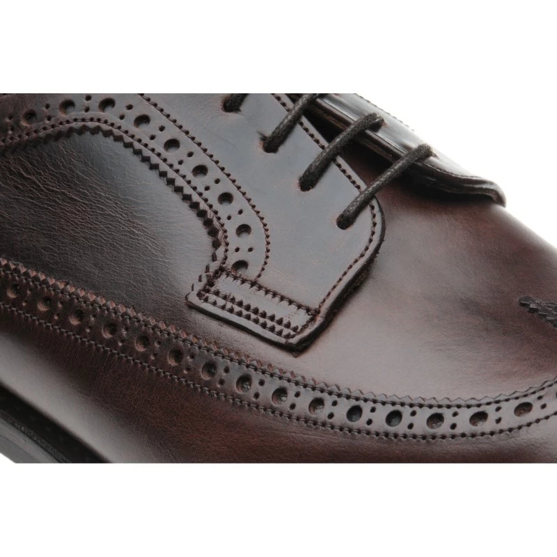 Herring Kirkoswold is a sturdy brogue with Derby or Gibson lacing made on an elegant last, thus combining a contemporary shape with a traditional silhouette. The brown calf is a sumptious pull-up leather that has a semi-distressed appearance to give the modern and urban look that helps this style transition so well from country to town wear. This Classic last shape with its rounded toe is a staple of any man’s wardrobe. This is a standard fitting shoe so you can confidently order your normal UK size. |