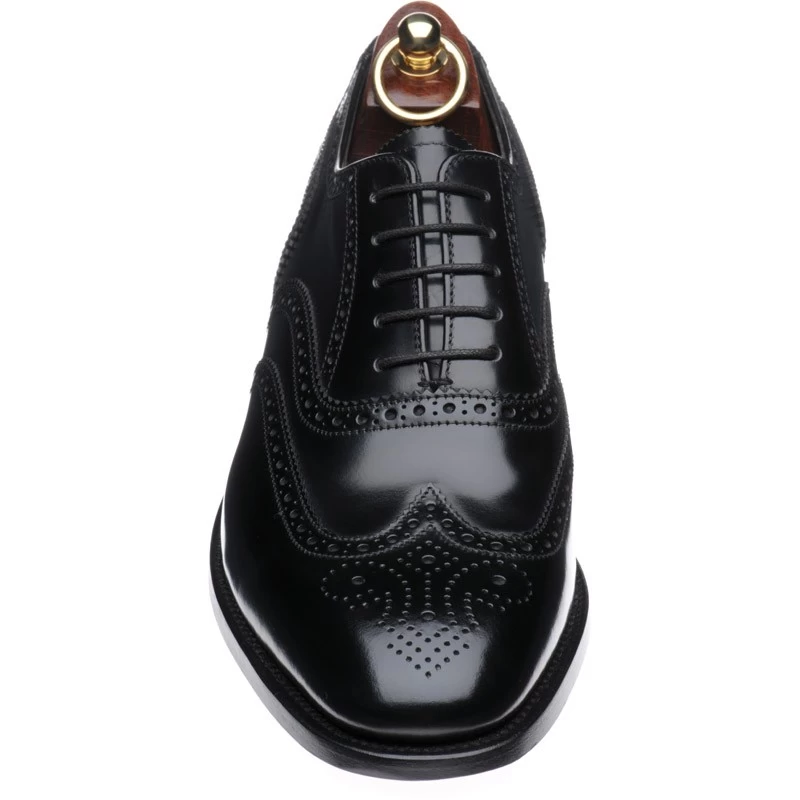 Loake’s budget brogue in a polished (corrected calf) leather and made on a Goodyear-welted leather sole. |
