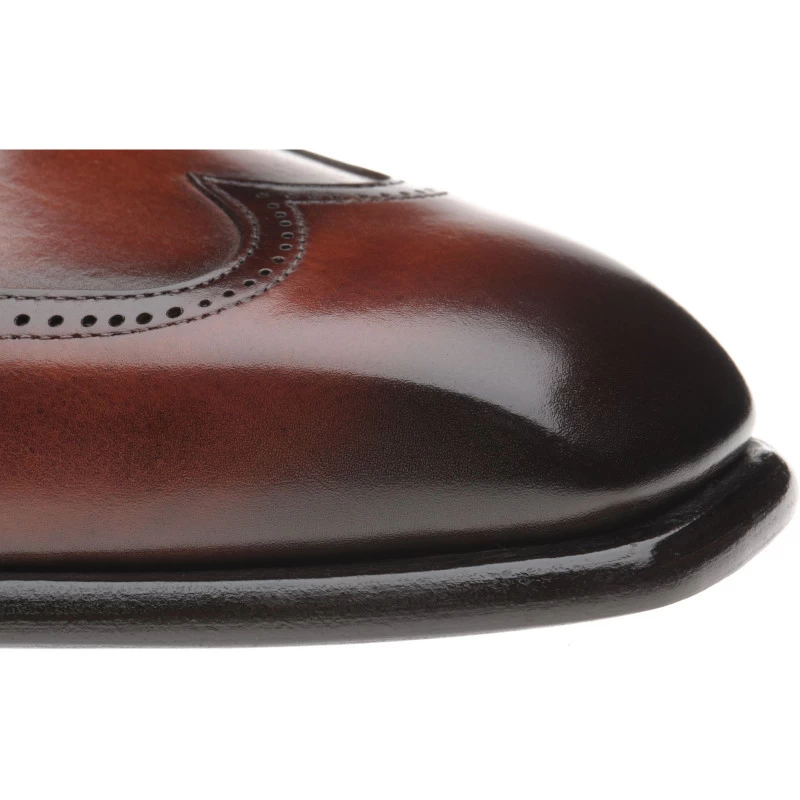 Herring Villiers is a new addition to our unique Handgrade range, featuring an exclusive blue sole made specifically for us. These shoes are exquisitely handmade with a lot of love, care and attention by the master craftsmen and women of the Carlos Santos factory. The last shape and styling speaks for itself, making this range one of the best available. Please note that all closed-channel or in-channel stitching will eventually become visible with wear as the leather is worn away. These shoes are hand-patinated individually in the Carlos Santos factory so there can be a small variation of colour from the shoes you receive to the picture on the website. We always strive to get consistency but in a hand-finished product this is not always possible and is a sign of quality. Please note that we would only advise using a gentle wax-based cream or polish to protect carefully hand-finished shoes such as these. Harsh products such as renovating creams, high solvent based products and rain protectors may strip the carefully applied finish. If this happens we will not be able to refund the shoes although we may be able to get them re-finished at the factory for you at your cost. |